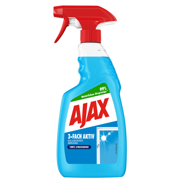 Jetzt bekommen Sie Fenster-, Glas- und beschichtete Oberflächen mit dem Ajax 3-FACH AKTIV Glasreiniger blitzsauber. Dieses Glasreinigungsspray sorgt für eine gründliche Reinigung von Glas, Fenstern, Spiegeln und beschichteten Oberflächen. Das Fensterreinigungsspray hat einen Anti-Beschlag-Effekt und hinterlässt Oberflächen zu 100% streifenfrei für ein Ergebnis, auf das Sie stolz sein werden. Darüber hinaus hat dieses Glasreinigungsspray eine neue Formel, die im Vergleich zur vorherigen Formel eine höhere Wirksamkeit aufweist.