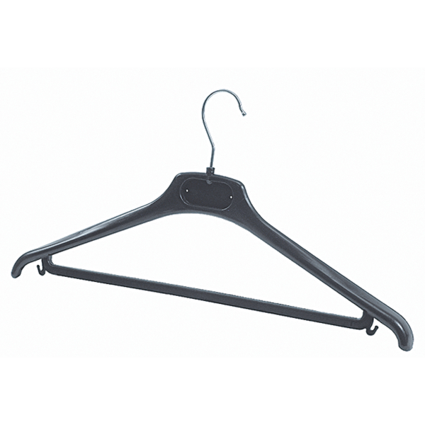 Kleiderbügel aus schwarzem Kunststoff. Länge: 430mm. Packung: 20 Stück.