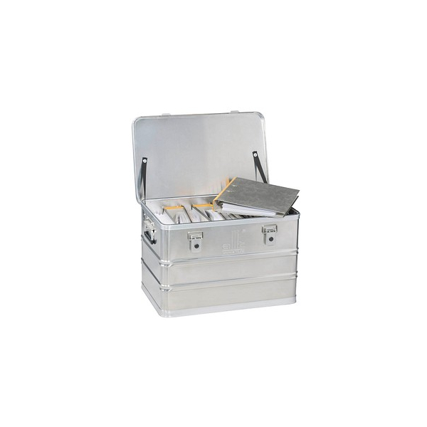 Die Alubox hat ein großzügiges Volumen von 71,6 Litern und ermöglicht es Ihnen, Ihre Utensilien sicher und ordentlich zu verstauen. Das robuste Material aus Aluminium sorgt für Langlebigkeit und Stabilität, während die praktische Bauweise zusätzlich Platz spart.