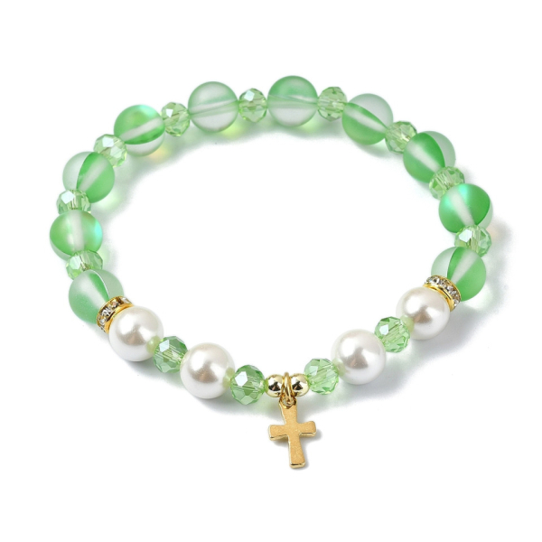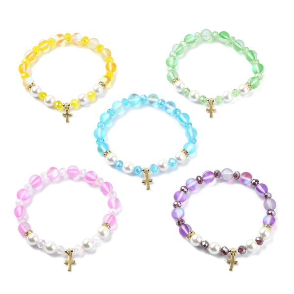 Dehnbares Armband mit goldenem Edelstahlkreuz, sortiert in 5 verschiedenen Farben. Modernes und vielseitiges Accessoire für jeden Tag.
