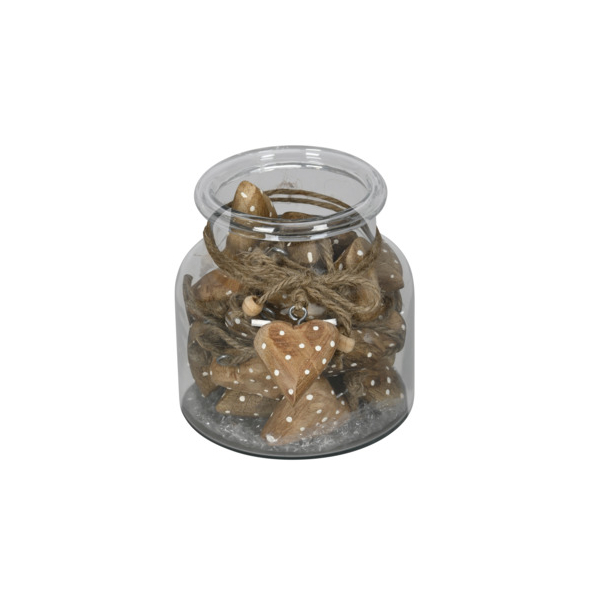 Dekorativer Herzaufhänger aus echtem Mangoholz – liebevoll gestaltet mit einem Punktmuster in Braun und Weiß. Mit einer Größe von ca. 4 x 2 x 4 cm und 6 cm Hänger ist dieses Herz ideal zum Aufhängen an Zweigen, Geschenken oder als stilvolles Detail in deiner Wohndekoration. Die Herzen sind im Glas sortiert – jedes ein kleines, charmantes Unikat.