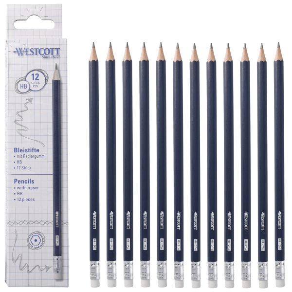 Entdecken Sie den hochwertigen Bleistift Westcott, E-733992 00, der mit seiner klassischen Härte HB für vielseitige Anwendungen geeignet ist. Der Bleistift kommt in einem stilvollen dunkelblauen Design und verfügt über einen praktischen Radiergummi, der Ihnen hilft, Fehler schnell zu korrigieren.