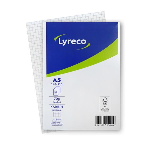 Briefblock 100050737, Lineatur 5 / kariert, A5, 70g, blau/weiß, 50 Blatt