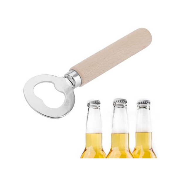 Flaschenöffner 141x44x19mm Stahl 401657 mit Naturholzgriff - der perfekte Begleiter für gemütliche Abende oder Partys mit Freunden.