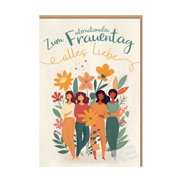 Die Frauentagskarte im Format 11,5 x 17 cm zeigt ein wunderschön gezeichnetes Motiv von Frauen und Blumen auf glattem Karton. Mit ihrem kunstvollen Design eignet sich diese Druckkarte perfekt, um der besonderen Frau in deinem Leben zum Frauentag liebevolle Grüße zu übermitteln.