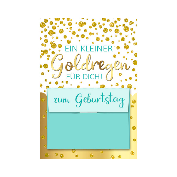 Entdecken Sie die zauberhaften Geburtstagskarten 51-1806 von Alpedia, die mit ihrem eleganten Goldregen-Motiv bestechen. Diese Geldscheinkarte aus weißem Karton bietet Ihnen die perfekte Möglichkeit, persönliche Geburtstagswünsche stilvoll zu übermitteln. Der aufgeklebte Umschlag dient als praktisches Geldfach und macht es einfach, ein kleines Geldgeschenk hinzuzufügen.