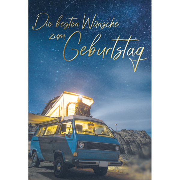 Entdecken Sie die bezaubernden Geburtstagskarten von Alpedia in der Ausführung 51-5125, die mit einem stimmungsvollem Motiv begeistert. Die Karte aus glattem, weißem Karton zeigt einen farbenfrohen Bulli, der vor majestätischen Bergen und einem romantischen Abendhimmel parkt. Die feine Prägung verleiht der Karte eine elegante Note. Diese klimafreundliche Druckkarte wird unverpackt angeboten, ganz ohne Cellophanhülle, und verfügt über einen innen liegenden Umschlag. Ideal für nachhaltige und persönliche Geburtstagsgrüße!