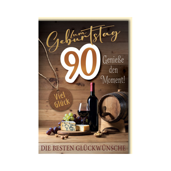 Entdecken Sie die stilvollen Geburtstagskarten 5521690 von Alpedia. Diese besondere Karte im Format 11,5 x 17 cm ist perfekt für die Feier eines bedeutenden Jubiläums. Mit einer feinen Prägung der Zahl „90“ setzt sie ein strahlendes Zeichen für einen besonderen 90. Geburtstag.