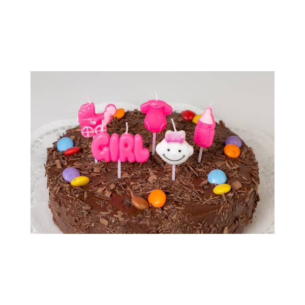 Alpedia Geburtstagskerze 52924 Body, Kinderwagen, Fläschchen, Girl u. Gesicht rosa