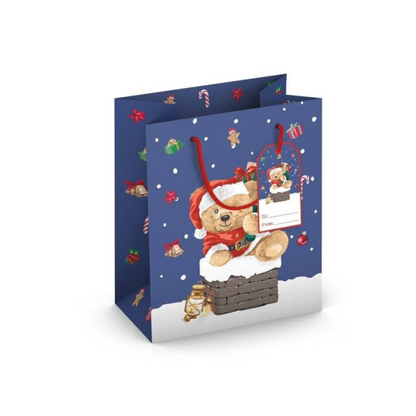 Alpedia Geschenktasche 224-514 TM Weihnachts-Geschenktragetasche Kind Teddy, Weihnachten, gedrehte Kordel mit Karte, Teddy, 19cm x 230mm