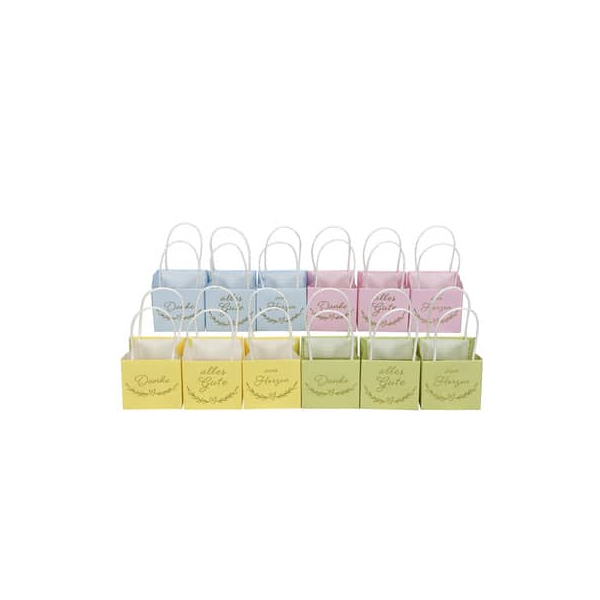 Dank ihrer kompakten Größe von 85mm x 80mm eignet sich diese Geschenktasche hervorragend für kleine Geschenke und Aufmerksamkeiten. Die bunten Farben – hellblau, rosa, gelb und grün – sorgen dafür, dass Ihr Geschenk noch mehr Freude bereitet.