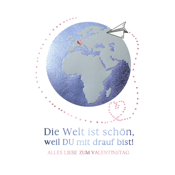 Entdecken Sie die zauberhaften Glückwunschkarten von Alpedia in der Artikelnummer 18-1015. Diese liebevolle Valentinstagskarte im Format 11,5 x 17 cm zeigt ein wunderschönes Motiv der Erde und trägt den herzlichen Schriftzug „Alles Liebe zum Valentinstag“. Die Druckkarte aus hochwertigem Karton ist mit einer edlen Folienprägung und Silberdruck veredelt, was ihr eine besondere Ausstrahlung verleiht.