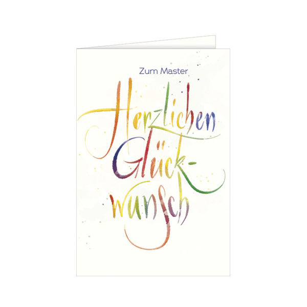 Feiern Sie besondere Momente mit den bunten Glückwunschkarten von Alpedia. Diese stilvolle Karte im Format 11,5 x 17 cm ist perfekt geeignet, um Ihren Glückwunsch zum erfolgreichen Abschluss des Masterstudiums auszudrücken.