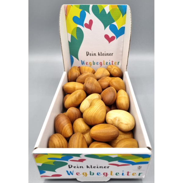 Liebevoll gefertigte Herzen aus Holz – ideal als kleine Aufmerksamkeit, Dekoration oder Symbol der Wertschätzung. Die glatte, natürliche Oberfläche liegt angenehm in der Hand und sorgt für ein wohltuendes Gefühl beim Halten.