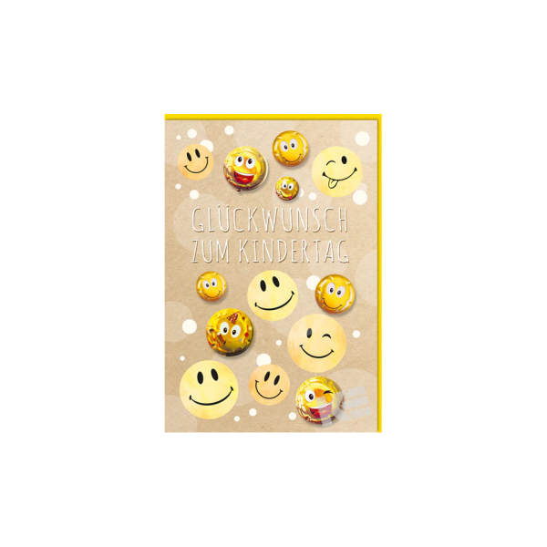 Die Kindertagskarte im Format 11,5 x 17 cm ist eine fröhliche und bunte Druckkarte, die mit vielen lachenden Smileys auf hochwertigem Karton gestaltet wurde. Diese Karte eignet sich perfekt, um kleinen und großen Kindern zum Kindertag fröhliche Grüße zu übermitteln und ihnen ein Lächeln ins Gesicht zu zaubern.