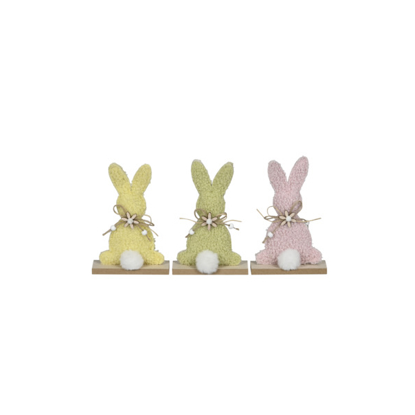 Fröhlicher Osterhase aus weichem Polyester in den Farben Gelb, Grün und Rosa. Mit einer Größe von 11 x 4 x 17 cm bringt er bunte Frühlingsstimmung in jedes Zuhause. Die 3-fach Sortierung garantiert eine vielfältige Farbauswahl – ideal für Osterdeko, Tischarrangements oder kleine Geschenke.