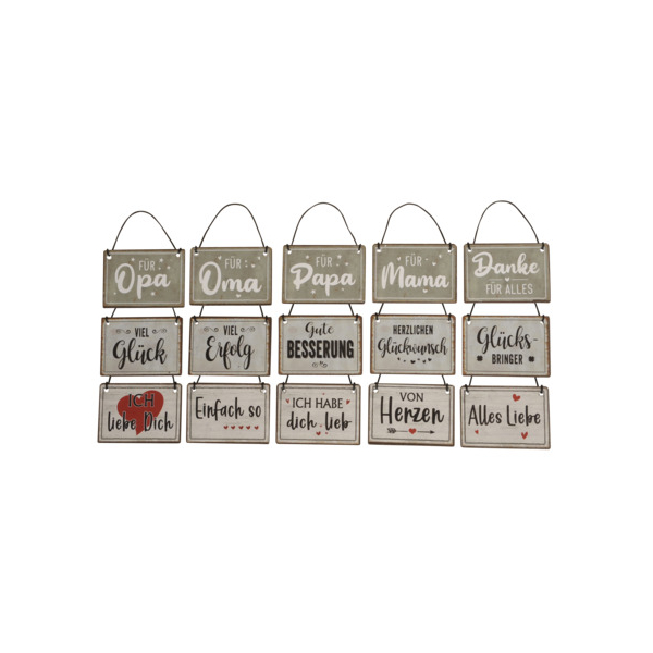 Kleine Eisenschilder im Format 7 x 5 cm, perfekt für viele kreative Einsatzmöglichkeiten. Die Schilder sind 15-fach bunt sortiert und bieten eine große Auswahl an Farben und Designs. Ideal zum Dekorieren, Basteln oder als charmantes Accessoire.