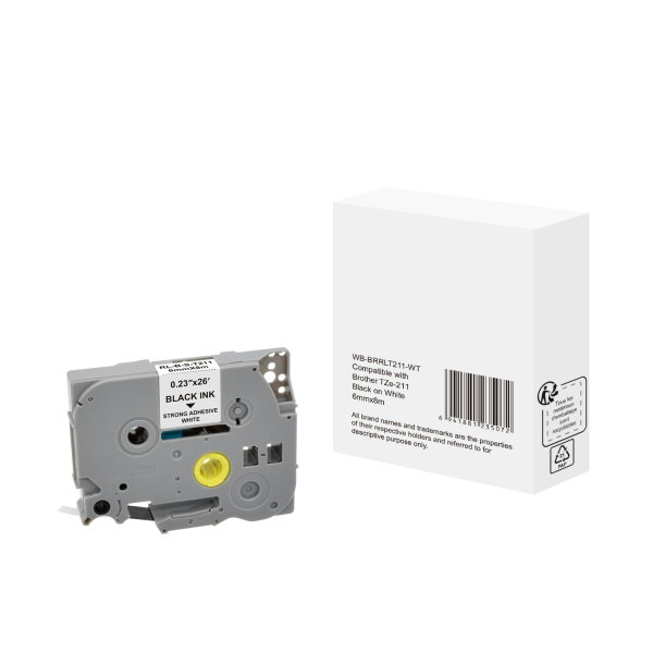 Alpedia Schriftband TZE-211, 6mm x 8m, schwarz/weiß, laminiert, kompatibel zu P-touch TZe-211
