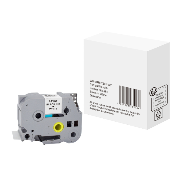 Alpedia Schriftband TZE-261, 36mm x 8m, schwarz/weiß, laminiert, kompatibel zu P-touch TZe-261