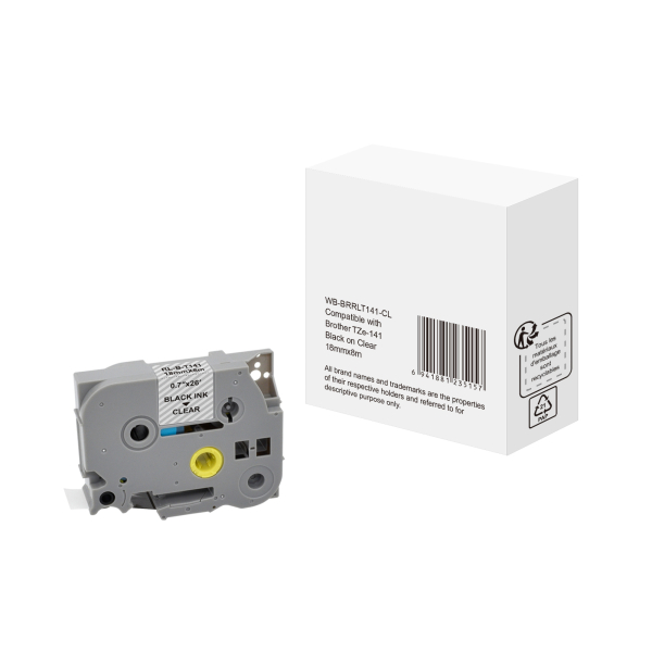 Alpedia Schriftband WBBRRLT141CL, 18mm x 8m, schwarz/transparent, laminiert, kompatibel zu P-touch TZe-141