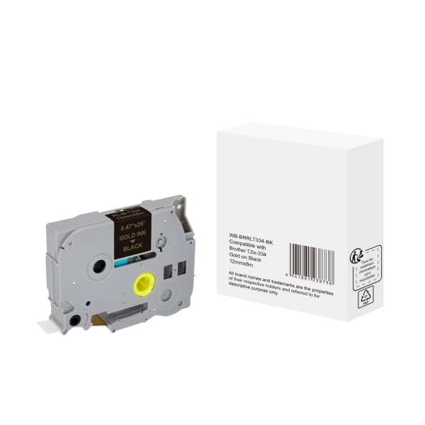 Alpedia Schriftband WBBRRLT334BK, 12mm x 8m, gold/schwarz, laminiert, kompatibel zu P-touch TZe-334