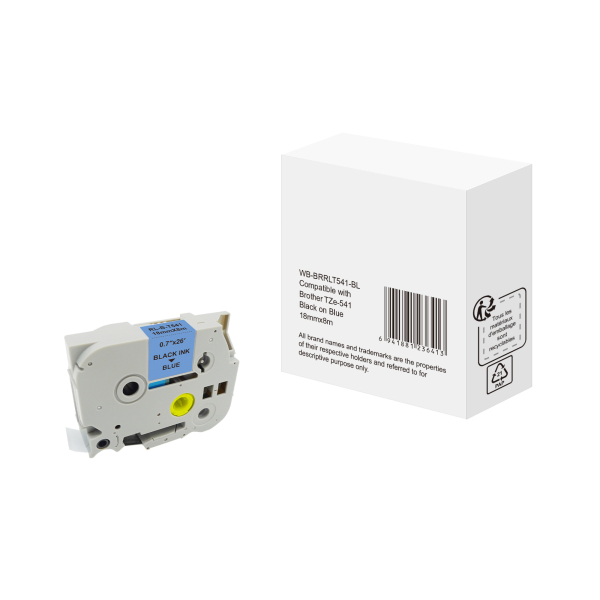Alpedia Schriftband WBBRRLT541BL, 18mm x 8m, schwarz/blau, laminiert, kompatibel zu PP-touch TZe-541