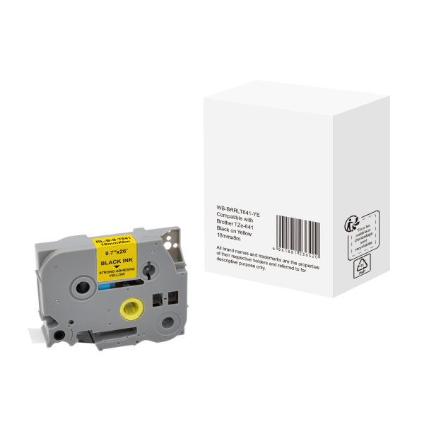 Schriftband WBBRRLT641YE, 18mm x 8m, schwarz/gelb, laminiert, kompatibel zu P-touch TZe-641