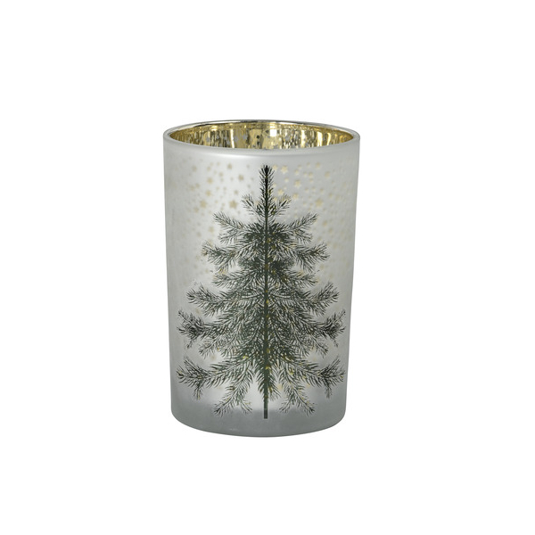 Entdecken Sie das festliche Windlicht von Alpedia, das mit seiner einzigartigen Form eines Weihnachtsbaums aus Glas begeistert. In ansprechenden Farben von Grün und Gold besprüht, wird dieses Windlicht zum perfekten Highlight für Ihre Weihnachtsdekoration.