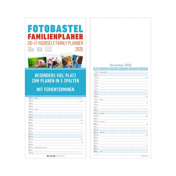 ALPHA EDITION Familienkalender 103648, Foto-Bastelkalender, 1 Monat / 1 Seite, 5 Spalten, 19,5x45cm , 2026