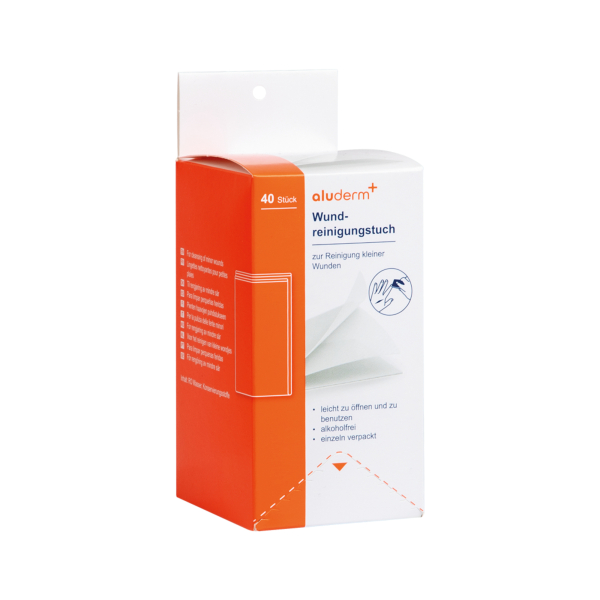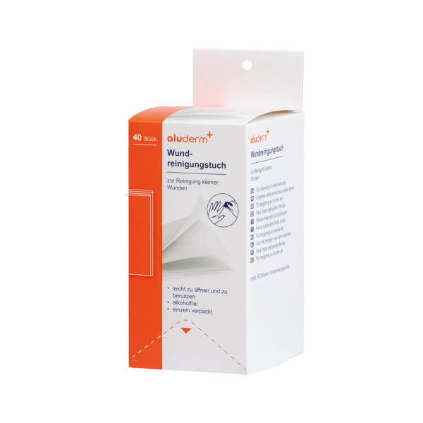 Die Wundreinigungstücher von aluderm sind die ideale Lösung zur Reinigung kleiner Wunden. Die Tücher sind leicht zu öffnen und zu benutzen, was eine schnelle und hygienische Handhabung ermöglicht.