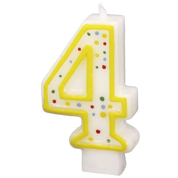 amscan 550284 Geburtstagskerze in weiß/gelb. • Motiv: 4 • Material: wachs • Brenndauer: ca. 4 Minuten • Höhe: 18cm • Form: Zahl