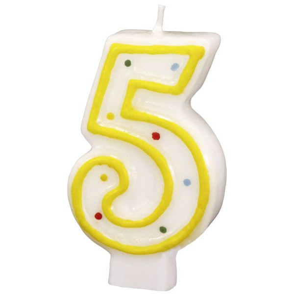 amscan Geburtstagskerze 550285 5 weiß/gelb 13x1x18cm (BxTxH) ca. 4 Minuten Brenndauer
