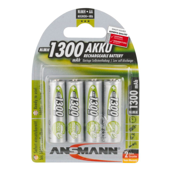 Die Akkus maxE zeichnen sich durch ihre hohe Kapazität von 1300 mAh und die Verwendung des umweltfreundlichen Nickel-Metallhydrid (NiMH) Batterie-Systems aus. Ein echter Gewinn für jeden Haushalt!