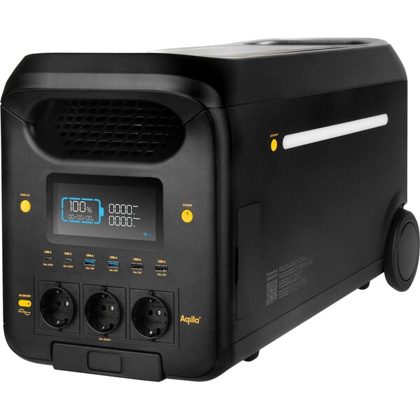 | 3x AC-Steckdosen, 2x USB-C-Ports, 4x USB-A-Ports, 2x DC-5521-Ausgänge, 1x 12 V-KFZ/Auto-Steckdose und 1x Anderson-Terminal | |