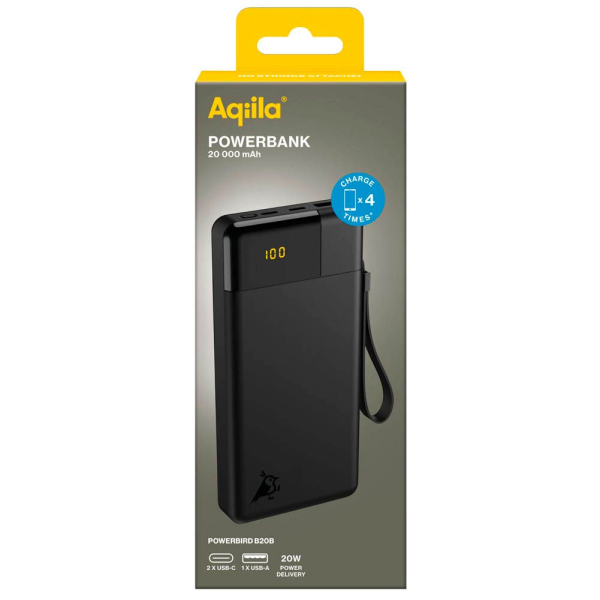 Entdecken Sie die Powerbank POWERBIRD B20 von Aqiila – Ihr idealer Begleiter für das Aufladen unterwegs. Diese Powerbank eignet sich perfekt als alltägliches Ladegerät und bietet Ihnen die Freiheit, mehrere Geräte gleichzeitig zu laden.