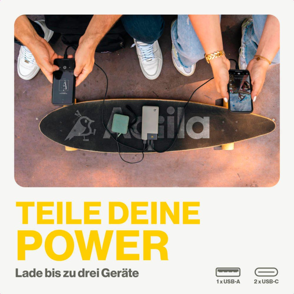 | 2x USB-C-Ports und 1x USB-A-Port | |
