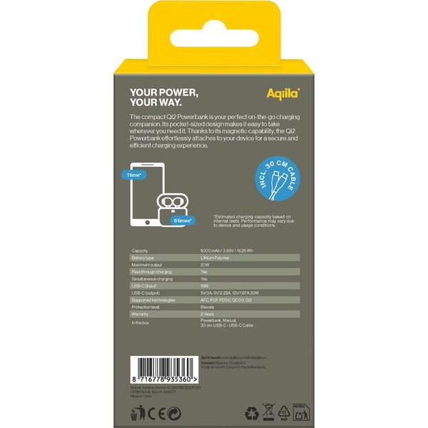 Aqiila Powerbank Qi2 PBIQB5BK360, schwarz, 5000 mAh