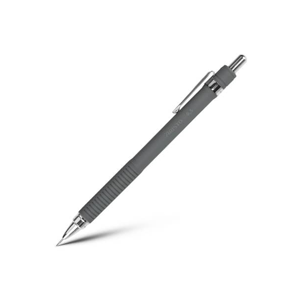 Die ergonomisch gerillte Griffzone sorgt für einen komfortablen Halt, während der Metallclip eine sichere Befestigung an Notizblöcken oder Taschen ermöglicht. Der Druckbleistift hat einen mattgrauen Schaft aus hochwertigem Kunststoff und ist mit einem Radiergummi ausgestattet, um Korrekturen mühelos durchzuführen.