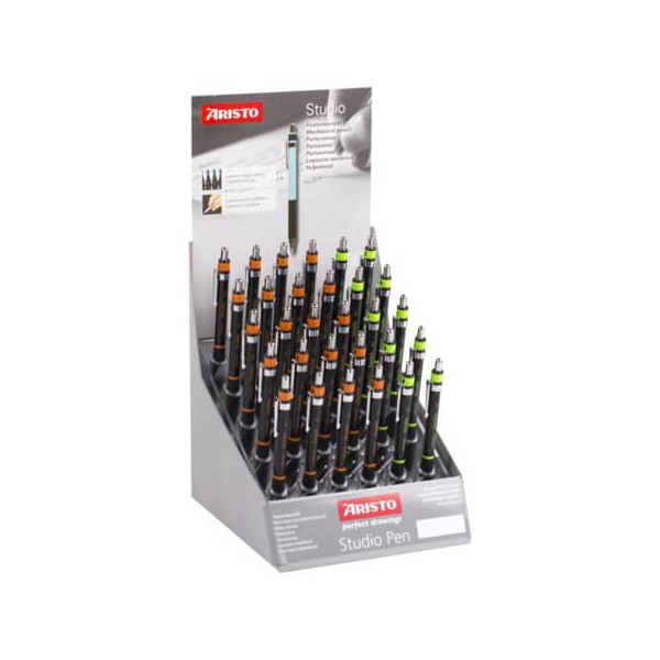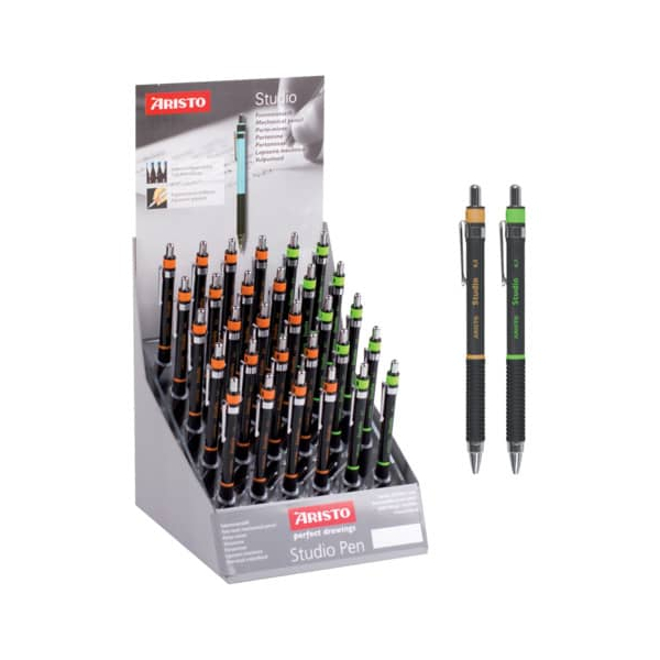 Aristo Druckbleistift Feinminenstift Studio Display (30), 70-VD85903, Härte HB, 0,5mm / 0,7mm, schwarz, mit Radiergummi