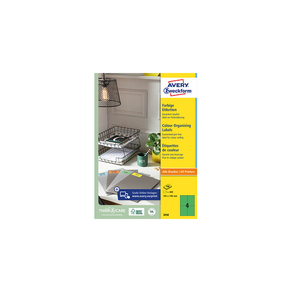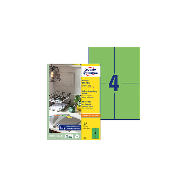 AVERY Zweckform Etiketten 3458, grün, 105x148mm, rechteckig