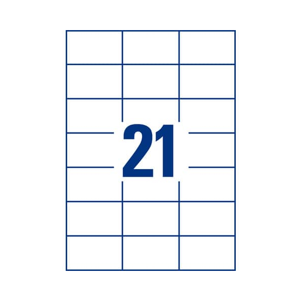 • Etiketten pro Blatt: 21 Etiketten pro Blatt