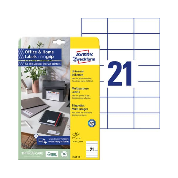 Jetzt AVERY Zweckform Etiketten Home Office 3652-10, weiß, 70x42,3mm, rechteckig günstig kaufen.