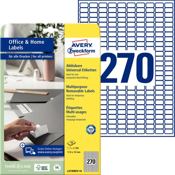 AVERY Zweckform Etiketten L4730REV-10, weiß, 17,8x10mm