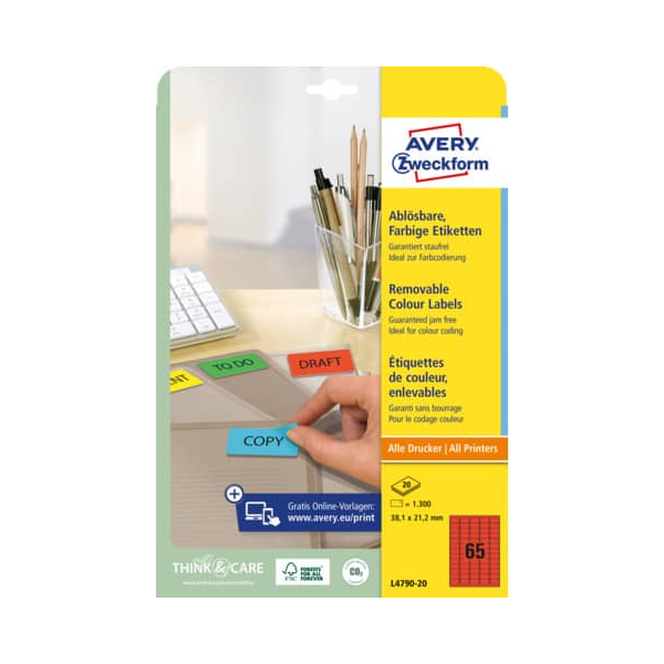 Entdecken Sie die farbigen Etiketten L4790-20 von AVERY Zweckform! Diese hochwertigen Etiketten in einem leuchtenden roten Design sind nicht nur optisch ansprechend, sondern auch äußerst praktisch für alle Ihre Organisationsbedürfnisse.
