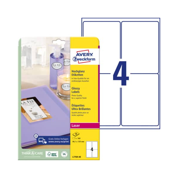 AVERY Zweckform Etiketten L7769-40, weiß, 139x99,1mm, rechteckig