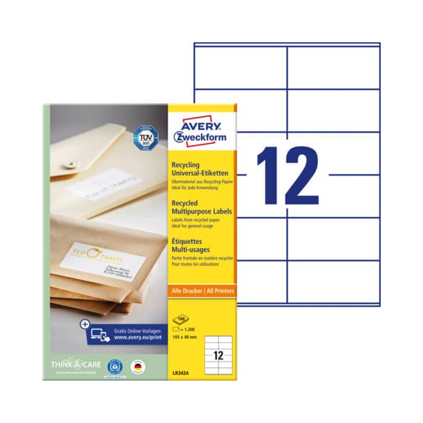 Jetzt AVERY Zweckform Etiketten Recycling LR3424, weiß, 105x48mm, rechteckig günstig kaufen.