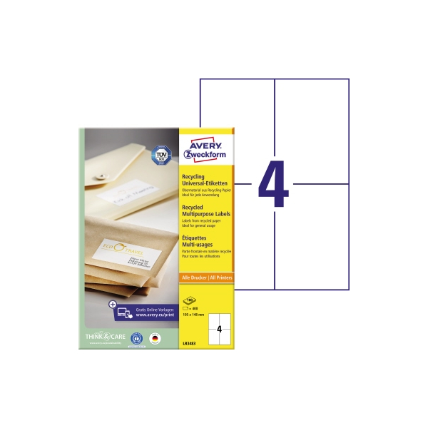 AVERY Zweckform Etiketten Recycling LR3483, weiß, 105x148mm, rechteckig
