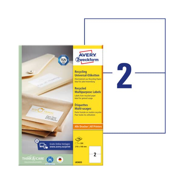 Jetzt AVERY Zweckform Etiketten Recycling LR3655, weiß, 210x148mm, rechteckig günstig kaufen.