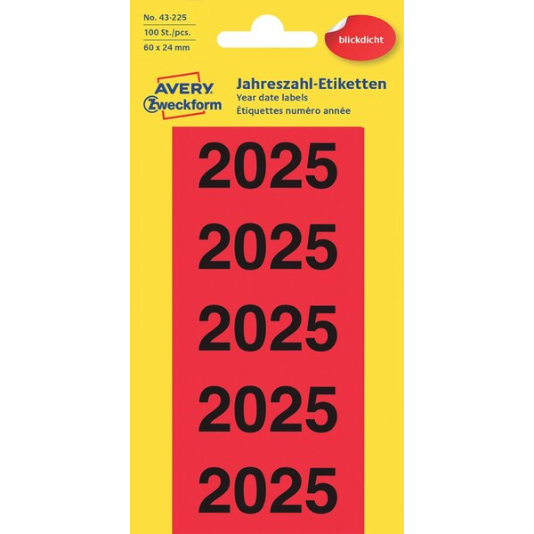 AVERY Zweckform Jahreszahlen 43-225, 2025, rot, 60x24mm, selbstklebend