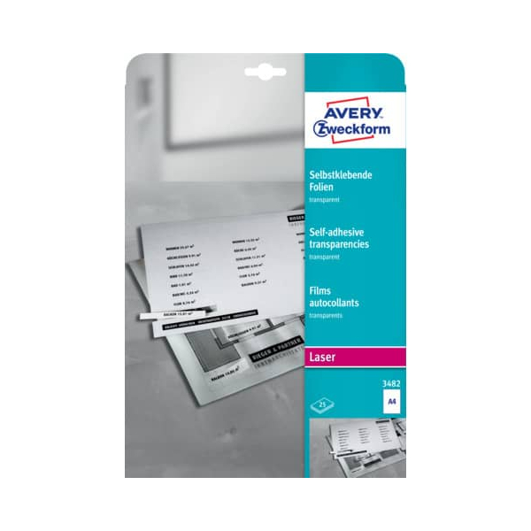 AVERY Zweckform Kopierfolie 3482, A4, für S/W-Laserdrucker, Farb-Laserdrucker, S/W-Kopierer, Farb-Kopierer, 0,14mm, selbstklebend, transparent